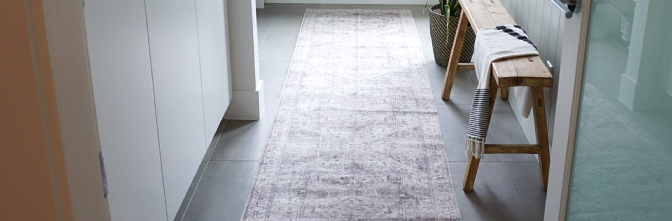 I recently received my first Rugs USA machine washable rug – the Grey Atrium Medallion Washable Area Rug as a runner for the mudroom. As you can see by the above and below pictures, I did not use it in the mudroom and it now lives in the kitchen – see, even if you have a general plan of where you want something it may not always work out but I almost always have a back up! That’s not the point, but I do want you to know it is a reality! Anyways, would you believe me if I said that this 2.6’x12′ runner was under $150?! Plus it’s washable?! It is a perfect runner for a high-traffic area conducive to spills or dirt (i.e., kitchen, mudroom).