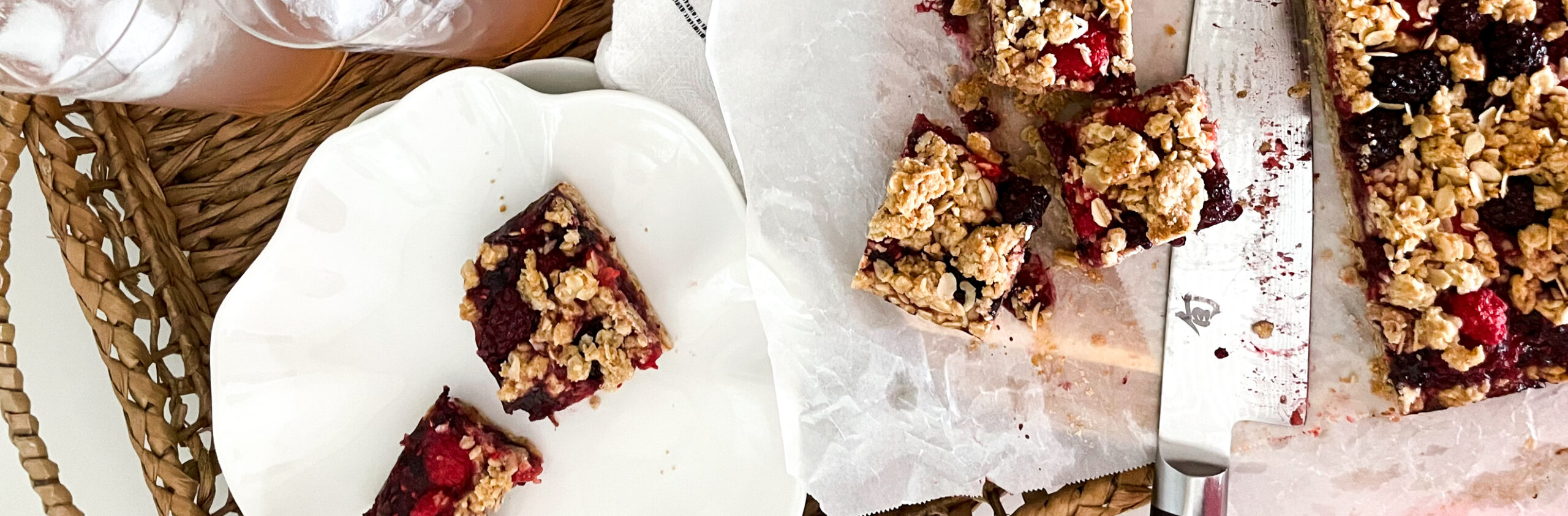 saw this video on TikTok... maybe it was Instagram. I could have sworn the title was brown butter berry crumble and I literally could not stop dreaming of it. Turns out their version was a brown sugar berry crumble which makes perfect sense, but my mind knew what it wanted. A brown butter berry crumble is a dessert that is right up my alley - crumble, crunch, oat-y, berries, fresh. Literally, it does not get any better than this. I am sitting here eating them on day two - and I will say, they've gotten even better. If you're on deck for dessert, this is calling your name to make. It's easy to whip together and is a perfect explosion of flavours for your taste buds. I also think you could bring this if you were doing a brunch/lunch situation. I am not pretending it's healthy for those morning meals, but it's the type of dessert which you could pretend it is... but seriously. There's a lot of butter and a lot of sugar - it's not. I made mine gluten-free. Does that make it healthier? Let's just get to making the dang bars.