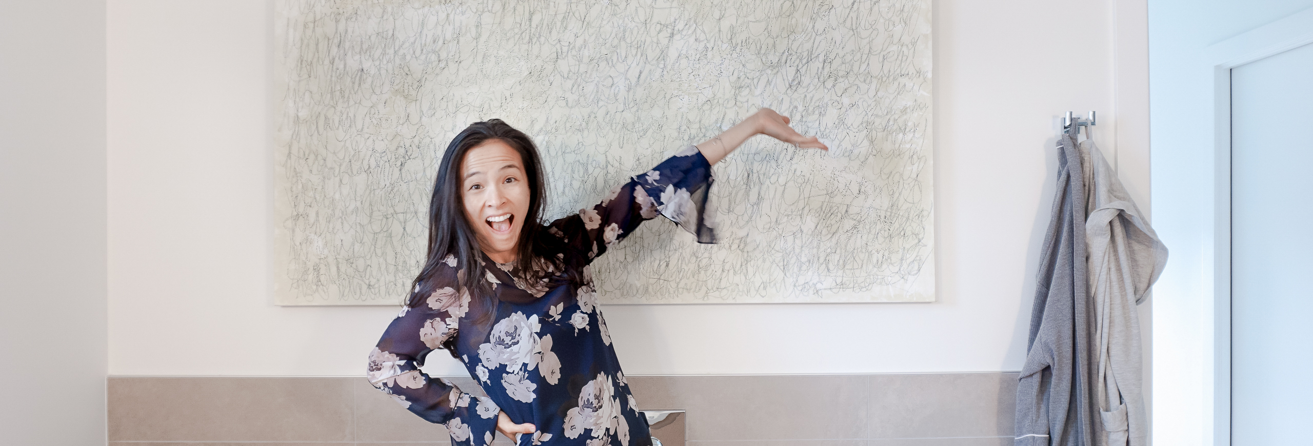 Not that any strangers are going into our master bath (I hope!) asking about the piece of art… Well, actually we still need a plumber to come in and assess this gigantic hole in our wall from a leak. But that’s another story for another time!