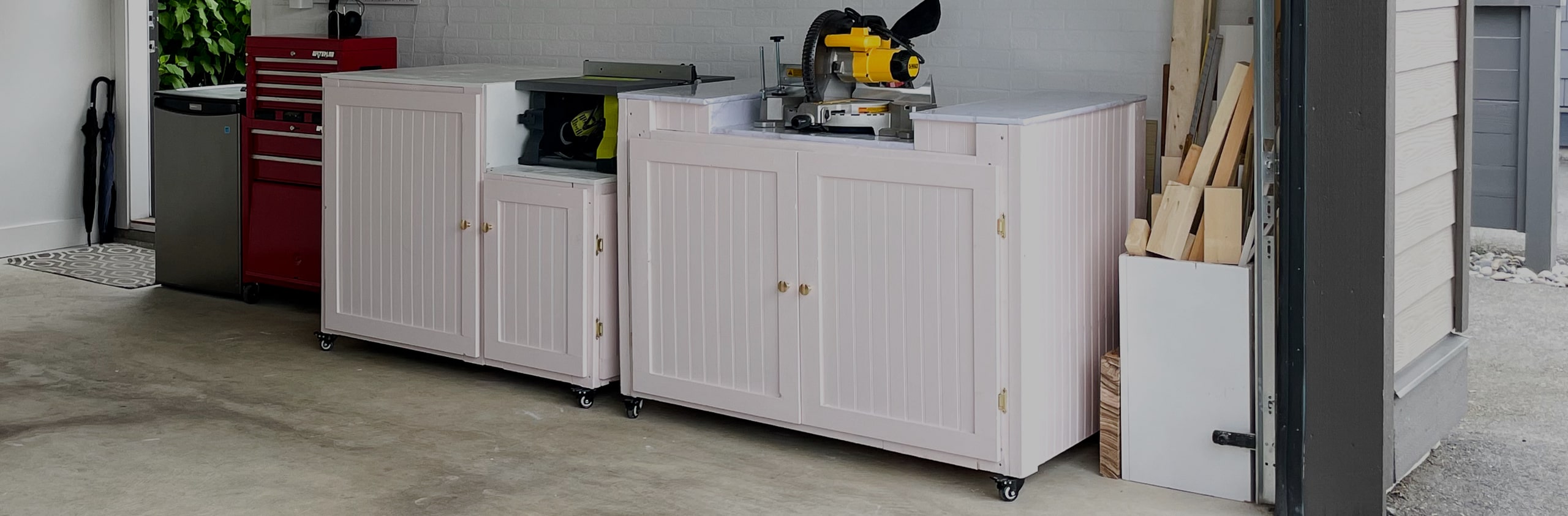 I’m calling this update week 7.5 (for the One Room Challenge). I’m not quite ready for the full reveal, but some update is better than none, right?! The biggest update you get this week is the update to my workbenches! The colour is on, the doors are made and installed, and the hardware is on. The workbenches are so darn close to being done, it is quite an exciting garage update.