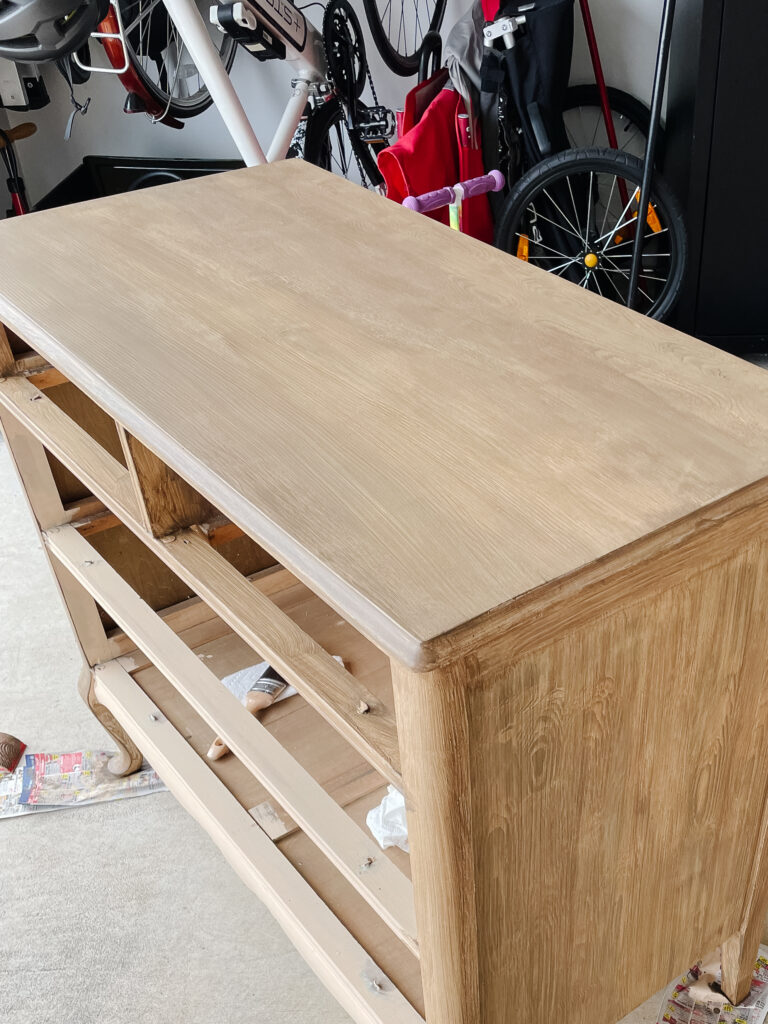 efinishing furniture has to be one of those things that people either love or hate. I'm certainly not sitting here pretending I love it by any means. What I will sit here and tell you is that the price of refinishing pre-loved pieces is something I can get behind. Generally, it's a heck of a lot less expensive than buying something brand new. You need to be on the prowl on FBM to score that epic deal - something free is ideal, but let's be honest, we'll take a dresser for $30. Evidently, $30 is how much I scored what I thought was a fully wood dresser. Spoiler alert: This dresser wasn't fully wood. It had a nice layer of veneer that someone sanded right through. Oh, and the wood grain beneath the veneer went in the opposite direction. Needless to say, I needed to figure out how to make this piece of furniture look like wood and not like it was damaged goods. Challenge accepted.