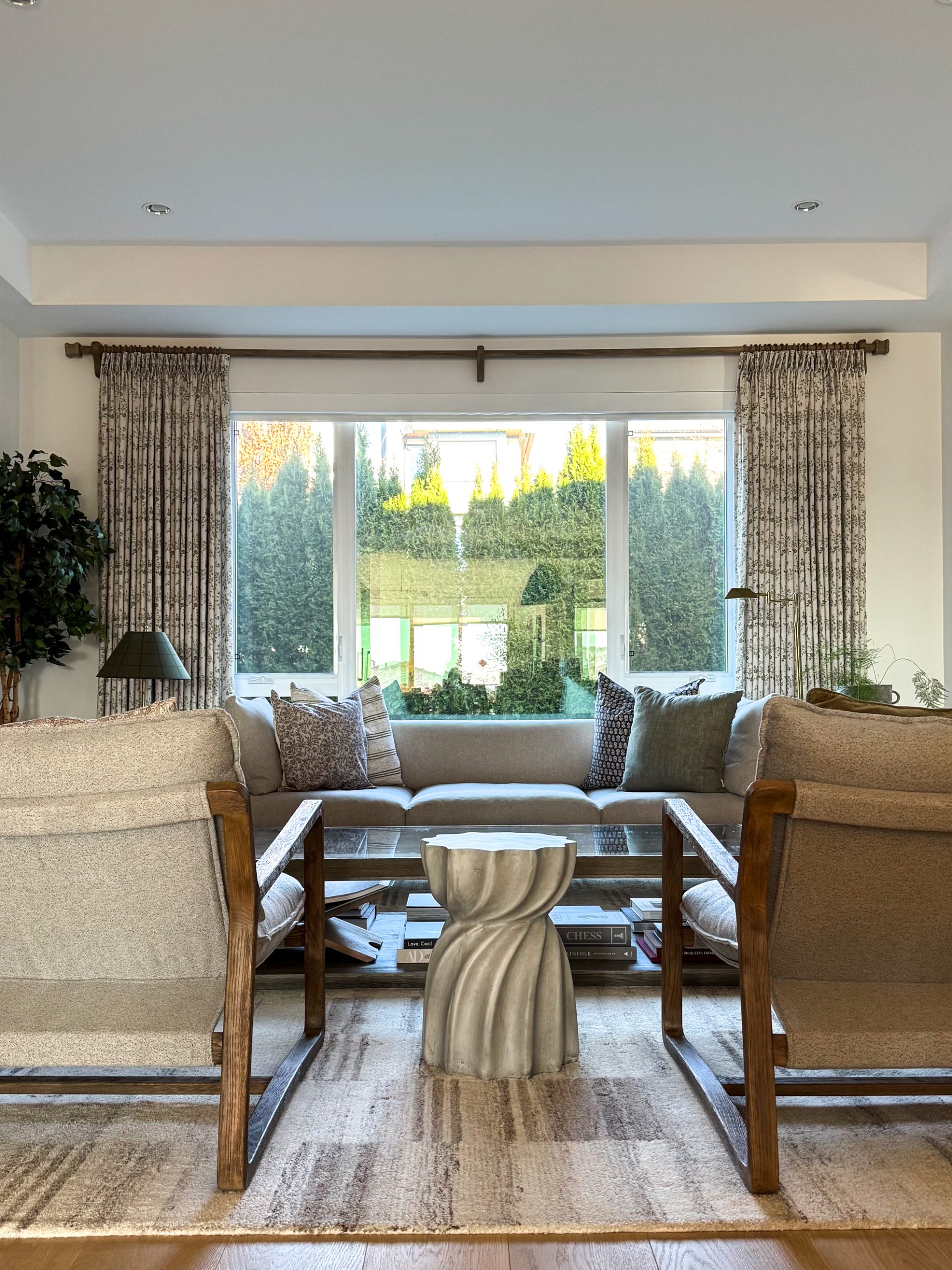 And don’t just stop at hanging them high—let the curtains extend well past the edges of the window frame, too. This simple tweak makes your windows look wider, giving your room a sense of grandeur.