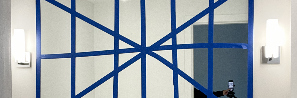 - Tape your mirror off. I taped along the perimeter of the mirror, and then created a grid like pattern in the middle.