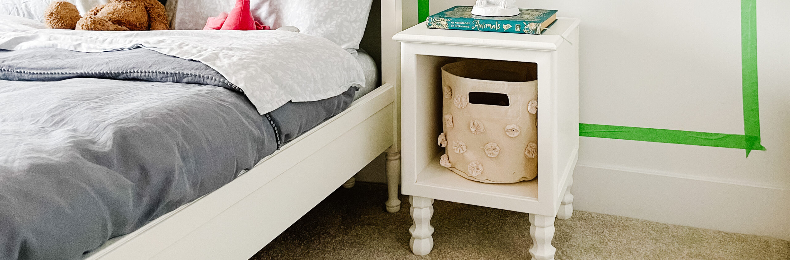 The original end tables I wanted were from Pottery Barn Kids. They were so gorgeous but obviously, came with a crazy price tag. So I opted to go the Ikea Eket hack route to make my own. At first I intended on totally replicating these but quickly realized that for the legs, and the proper sized boxes, it would have been far too expensive and time consuming (because I would have had to cut down the boxes again like I did in my Ivar Hack). I think these turned out even better than the PBK ones for the space we are working in!