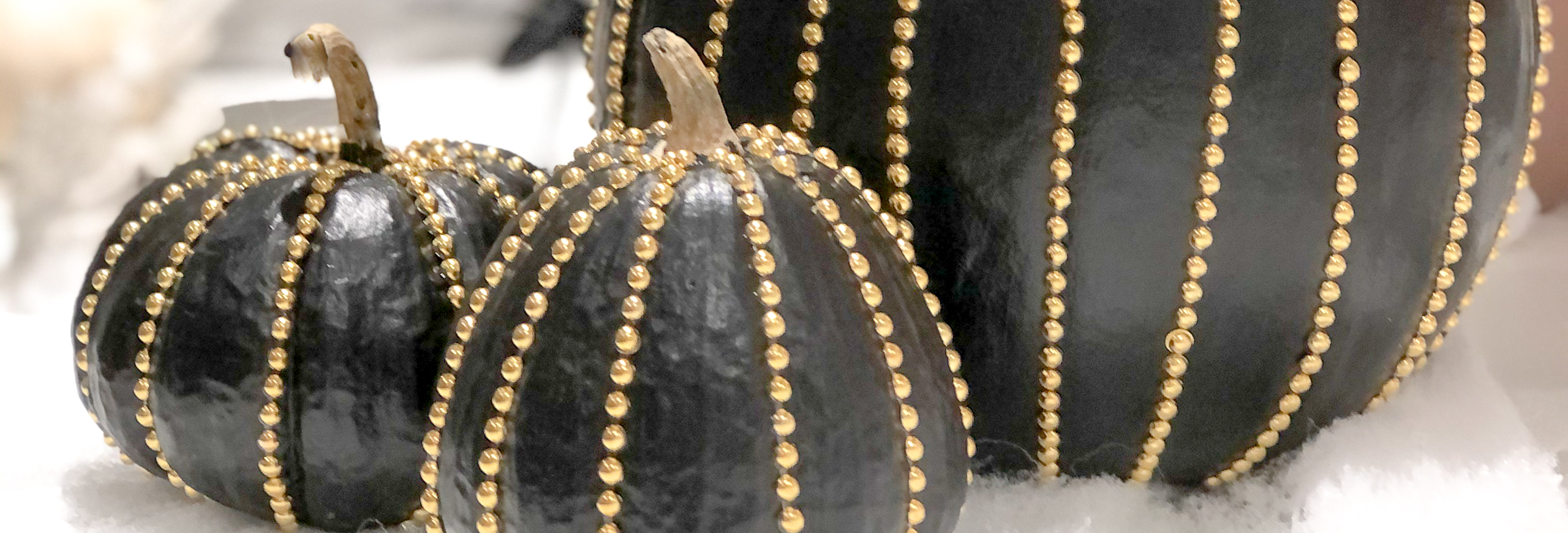 While I knew I wanted black pumpkins, it wasn’t until my neighbor sent me something very similar from her hairdressers’ salon that I knew they needed to be studded.