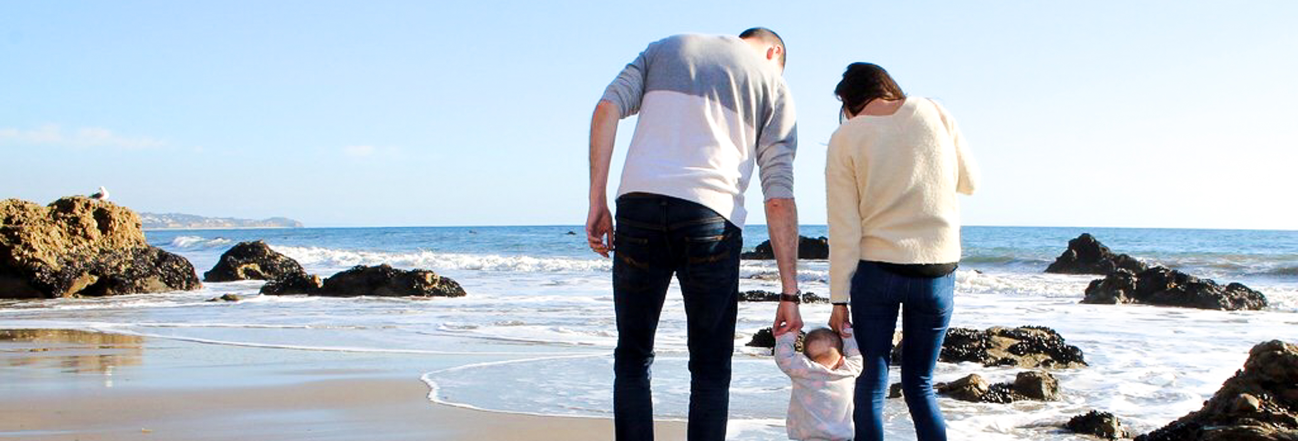 Signed Samantha's talking about what she's learned after three years of marriage while walking along the sandy beach with her daughter in the middle of her and her husband, holding both of their hands.