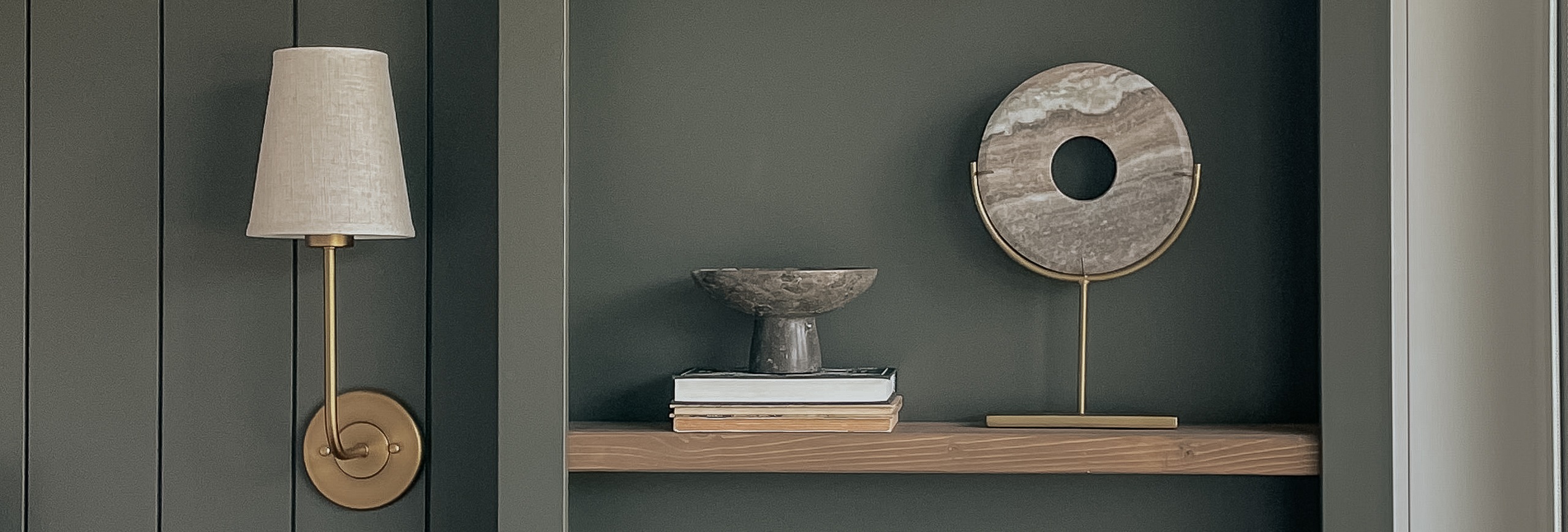 Guess what?! The design principles of shallow shelves are the same as those of regular shelves. Shocker, I know. There are the easy tips – think odd groupings (threes, fives, etc.), add textures, mix elements, pick a colour palette that works for you, and vary your heights. Styling ultra-shallow shelves doesn’t mean that the typical design principles go out the window. They are just harder to achieve.
